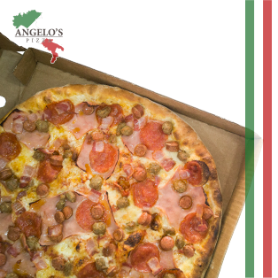 Jamón, Choricillo, Pepperoni, Aceitunas, Tomate, Cebolla, Carne y Champiñon